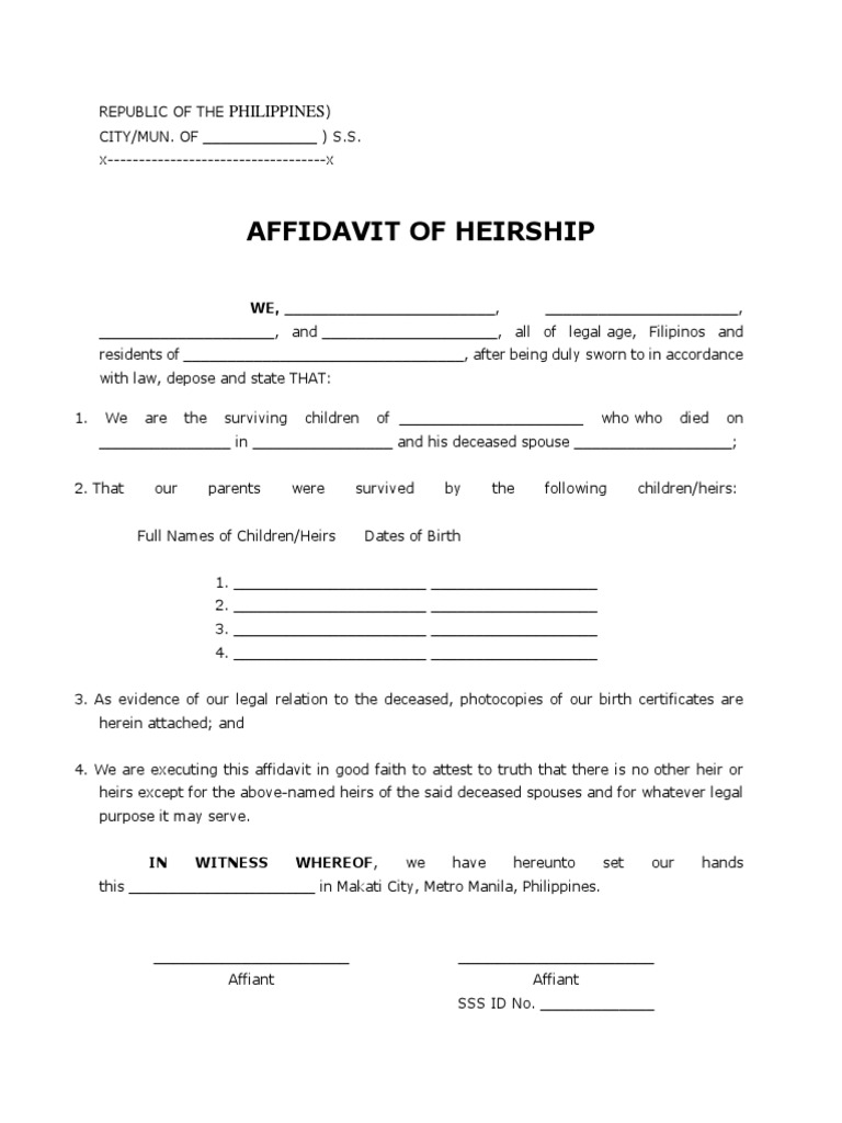 Sample Affidavit of Heirship Affidavit Civil Law Law)