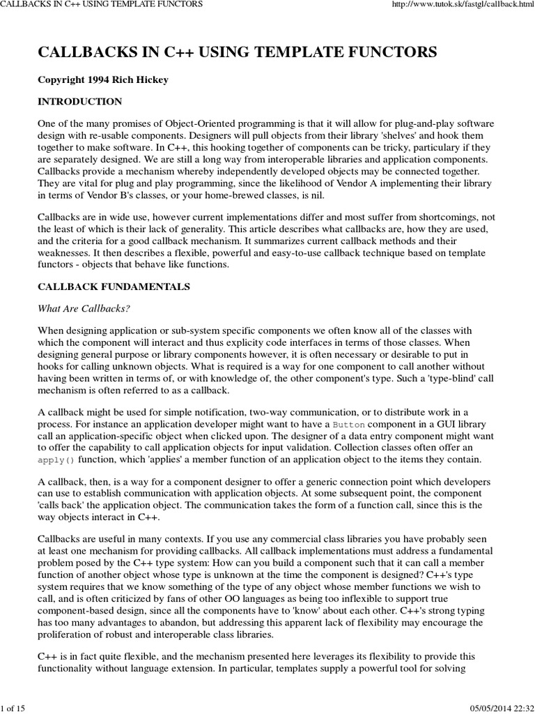 CALLBACKS IN C++ USING TEMPLATE FUNCTORS C++ Class