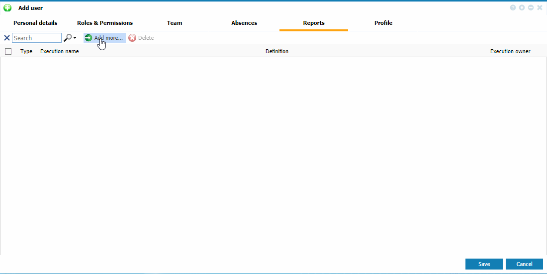 Tab Reports Add, Edit and Delete Reports/Exports Executions