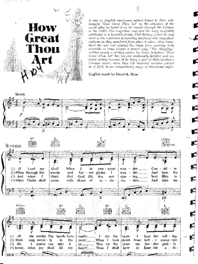 Check out our printable hymn how great thou art selection for the very best in unique or custom, handmade pieces from our shops. Lyrics for 'how great thou art' (hymn) o lord my god, when i in awesome wonder consider all the works thy hand hath made, i see the stars, i hear the mighty thunder, thy pow'r throughout. Share, download and print free sheet music for piano, guitar, flute and more with the world's largest community of sheet music creators, composers, performers, music teachers, students,. How great thou art lettering design from amy latta; 12″ square of light background.