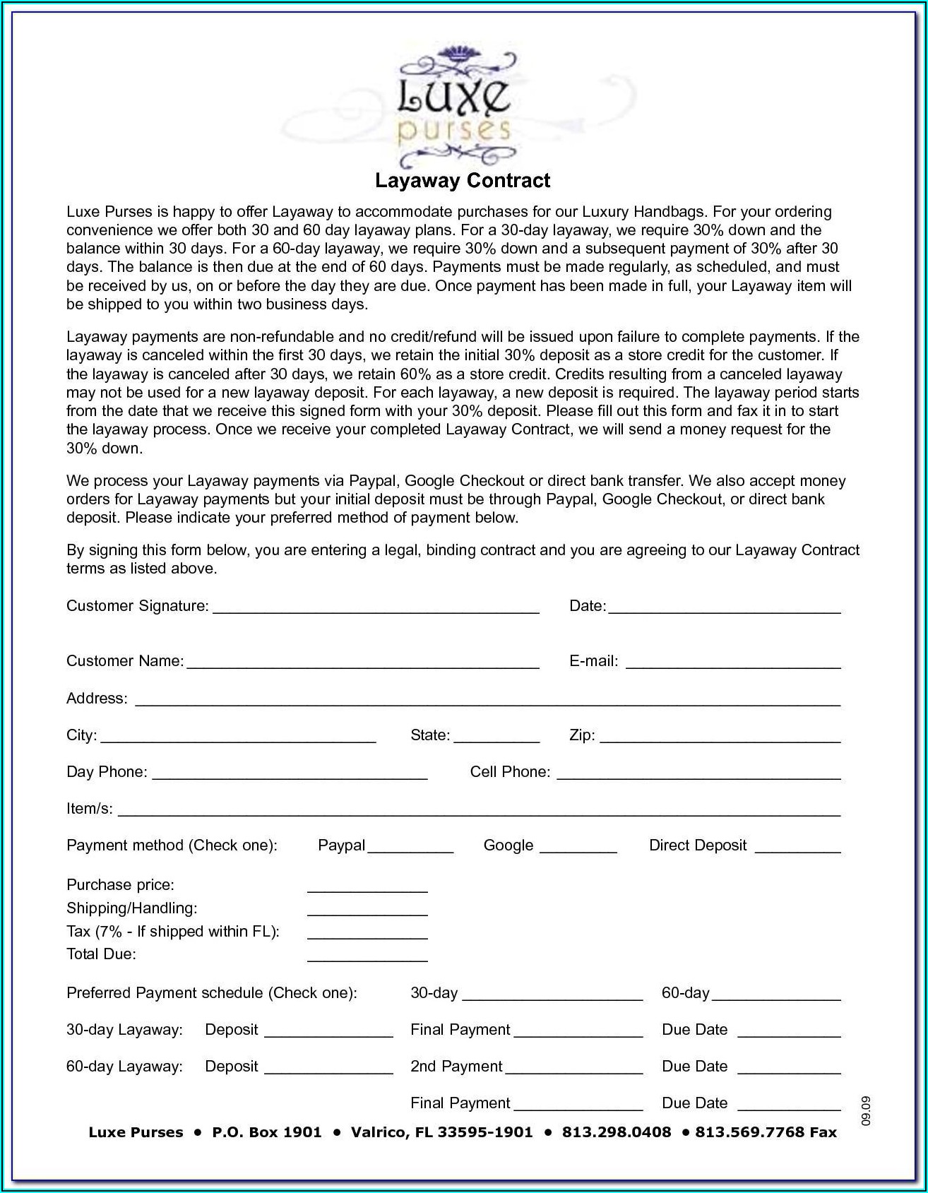 Layaway Agreement Forms Template 1 Resume Examples dP9lREkVRD