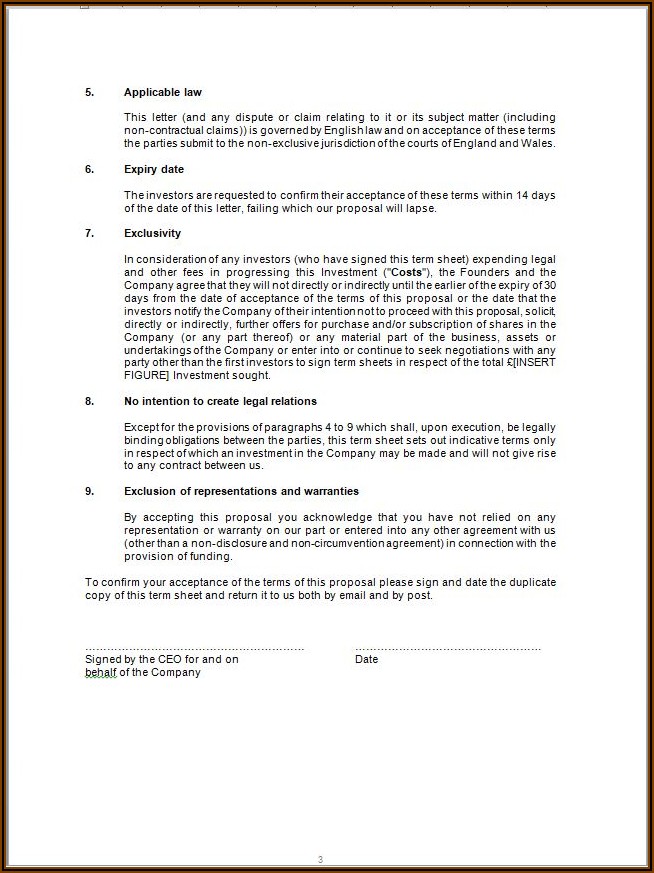 Equity Investment Term Sheet Template Template 1 Resume Examples