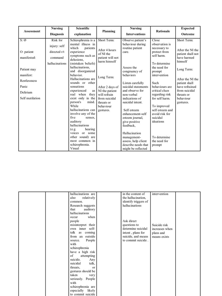 Nursing Care Plans Schiz Hallucination Schizophrenia