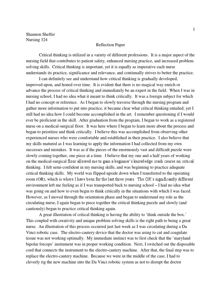 nursing reflection paper Critical Thinking Thought