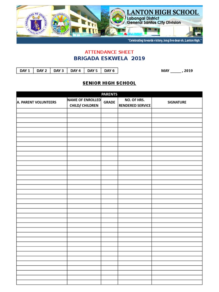 Brigada Eskwela 2019 Attendance Sheet Management System Template