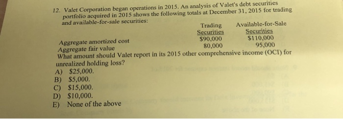 Solved 12. Valet Corporation Began Operations In 2015. An...